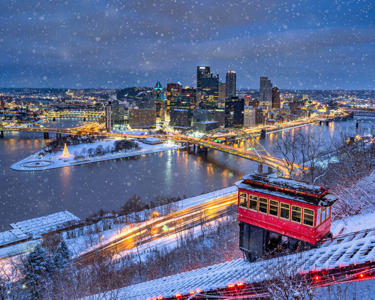 Christmas view of Pittsburgh from Duquesne Incline