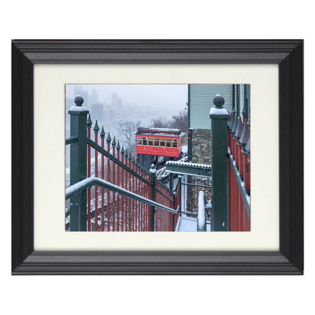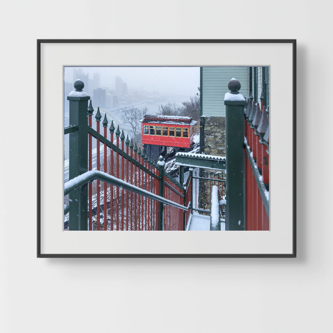Relive the charm of a Pittsburgh winter with the stunning “Snow Covered Duquesne Incline Trolley” fine art print. Expertly captured by Emmanuel Panagiotakis, this photograph features the iconic red trolley making its ascent against a snowy backdrop, beautifully blending city history with serene natural elements. It is a distinctive piece that makes an excellent, long-term artistic investment or a perfect gift for any fan of the Steel City.