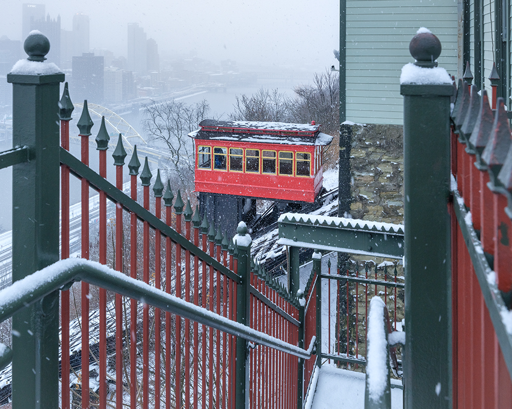 Historic Pittsburgh Scene: Captures the beloved Duquesne Incline Trolley, a symbol of Pittsburgh’s unique heritage.