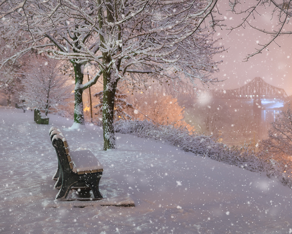 Atmospheric Serenity: The image perfectly captures the calming beauty of falling snow, creating a peaceful mood in your environment.